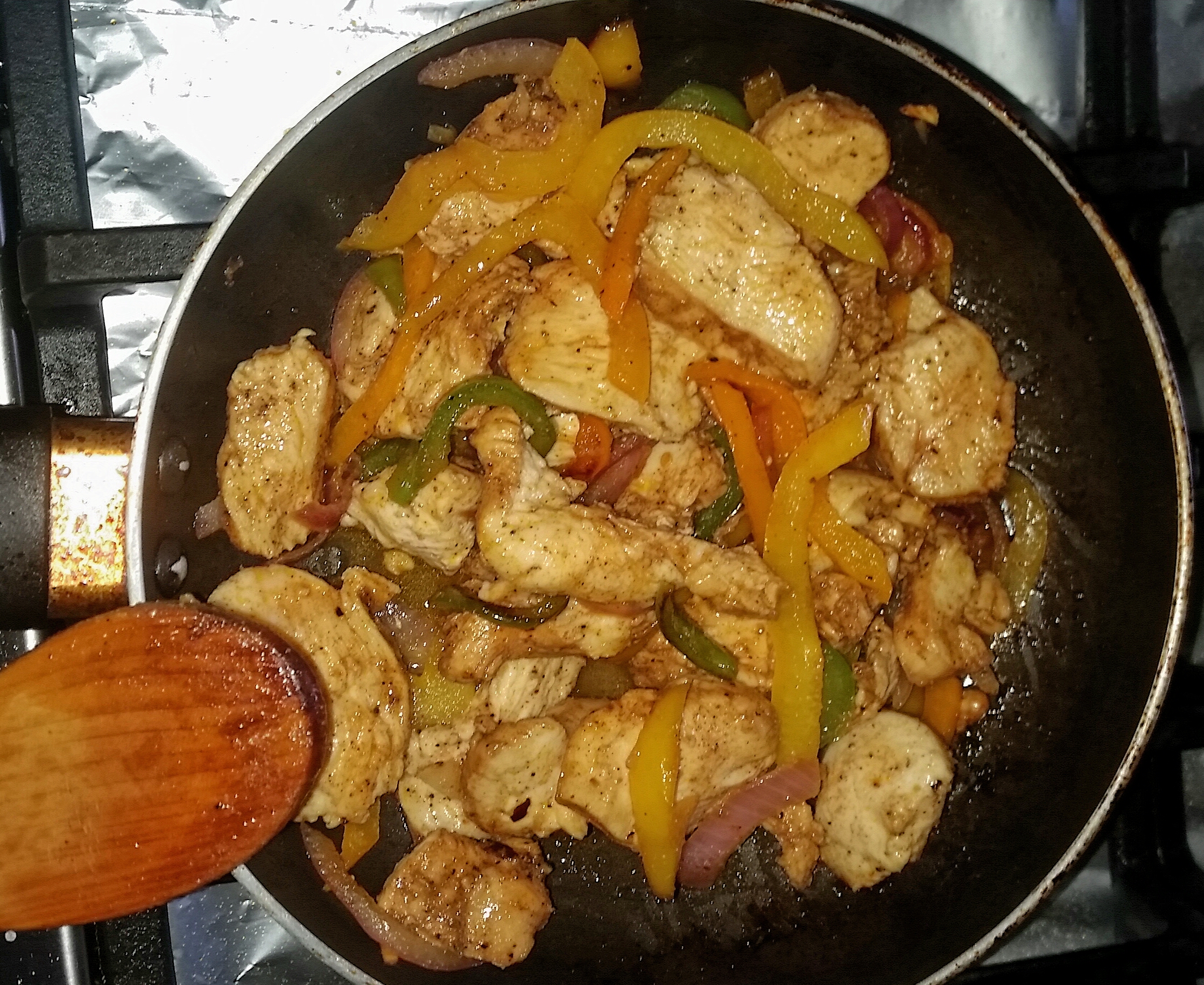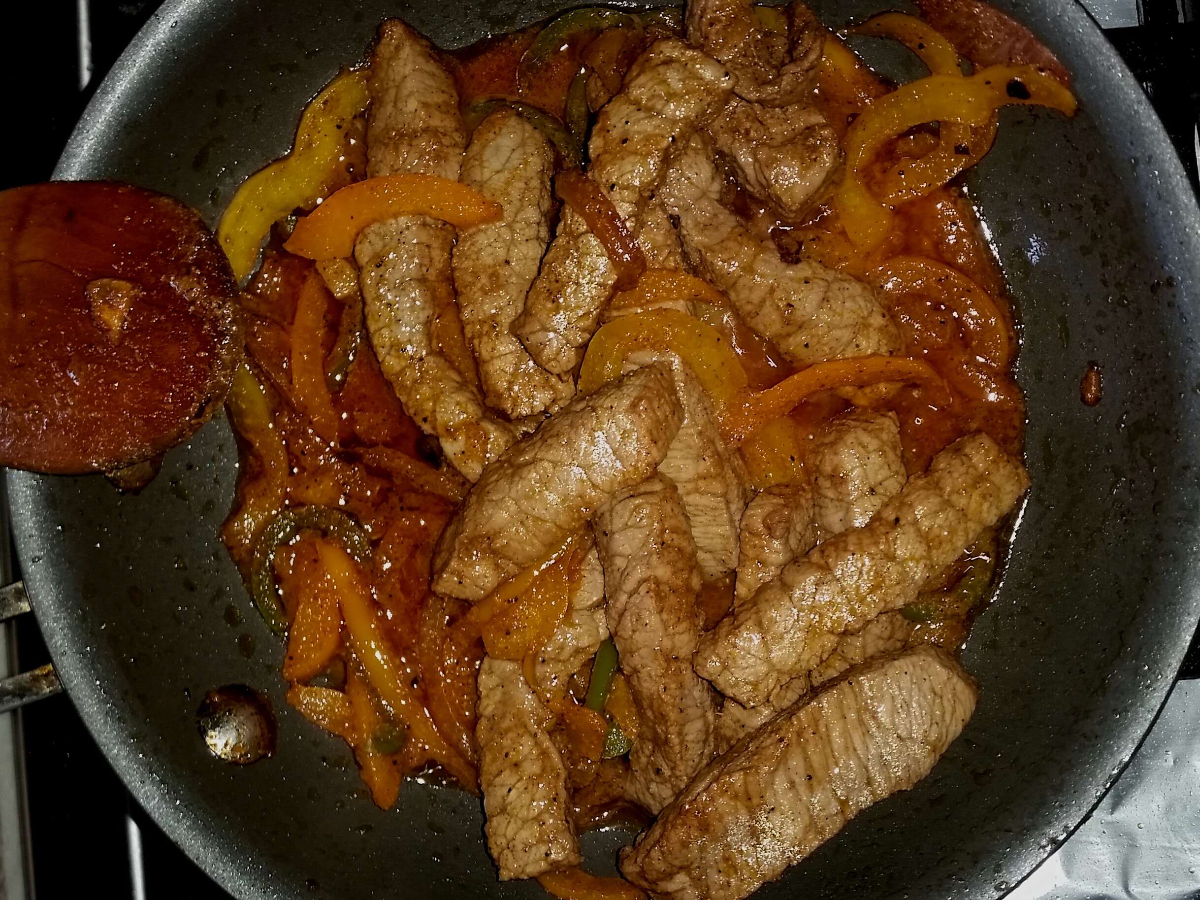 - Slice sweet peppers and onion; dice a clove *or two* of garlic