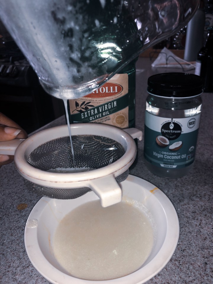 SECOND TRY: I decided to try a pre-poo treatment once again, and this time I used coconut oil and olive oil. The slip was great in detangling, even though I believed I didn’t make enough of the mixture. I also made sure to blend and strain it so I wouldn’t have as many clumps or residue as the first time. As mentioned previously it did make my hair soft and fluffy and added shine. Now that I actually have a plant I’ll be implementing the use of the aloe vera pre-poo treatment within my wash day routine.