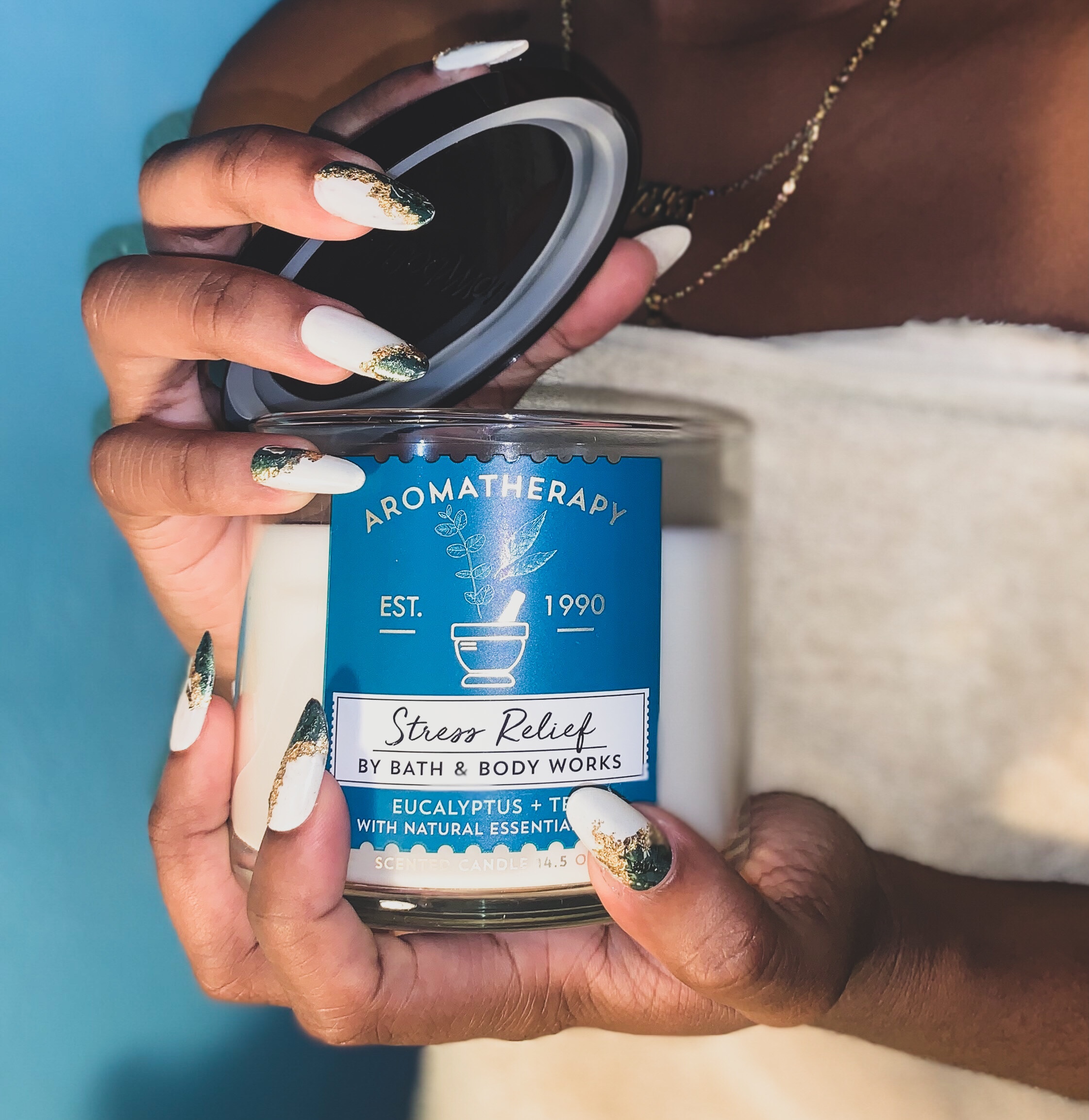 I’ve heard of Aromatherapy before, but never gave it a try until last month. While looking through Bath & Body Works’ website for new candle scents I came across one marked “stress relief”. I thought to myself that this may be a good option to give my room that “vibe” after coming home from work and wanting to destress. The candle advertised had a fragrance of Eucalyptus and tea with natural essential oils. The first time I lit it I wasn’t fond of the scent but I think it’s one that grows on you. I also tricked myself into thinking that it’s working even though I don’t like the smell, lol.