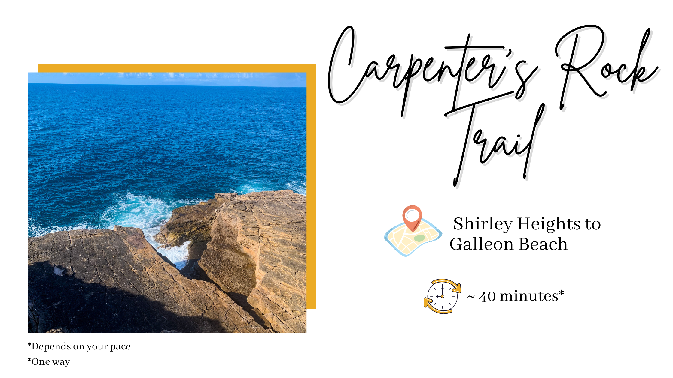 We started a little later than usual (7:30 a.m.), but it was still cool and covered on our way up. It was fairly easy and took us about 30-35 minutes to get to Shirley Heights where we rested for about 20 minutes. To continue onto Carpenter’s Rock Trail you’d come down the hill from the entrance and turn right; I can’t recall if there’s a sign but there should be a dirt trail after passing a small graveyard. Surprisingly, this only took us 38 minutes to get back to the beach and we did stop quite a bit to take photos and enjoy the views. It was a bit harder manoeuvring this area as we were going downhill and we had to watch out for loose rocks and different overgrown fauna. We did pass quite a few people on the trail, especially when we got closer to Carpenter’s Rock where people were also fishing. Although uncovered, I didn’t feel the heat until we were almost to the end; the ocean breeze was doing its thing! What I absolutely love about this hiking trail is that the beach is RIGHT THERE, so it’s the perfect way to cool down before leaving.