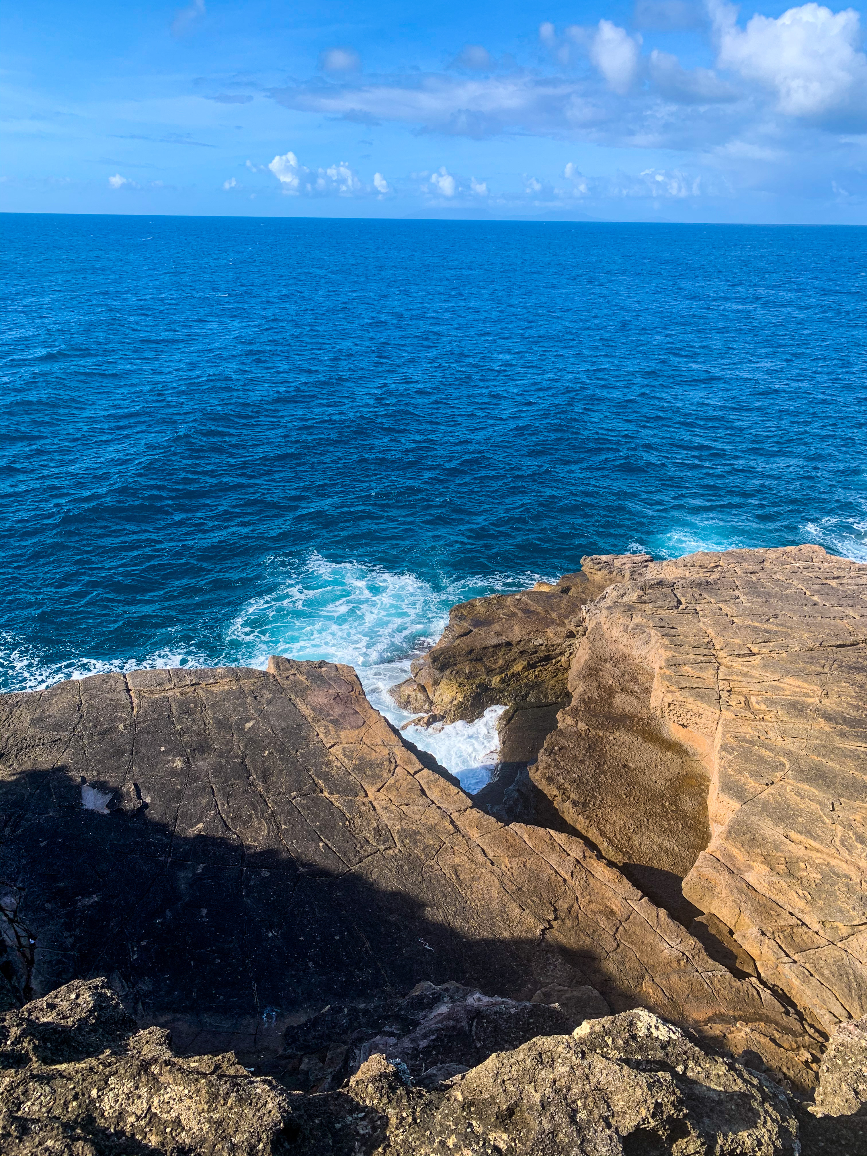 We decided to use this trail to get back to Galleon Beach in order to witness different views and get the full 360 of the area. The trail takes you across a cactus field and offers stunning views of the cliffside. Before we began the lookout trail, this was also an option for going up to Shirley Heights, however we were advised that it was more difficult. This trail gets its name from the rock formation jotting out at sea. We also passed some shimmering pools which locals refer to as Mermaid Gardens.