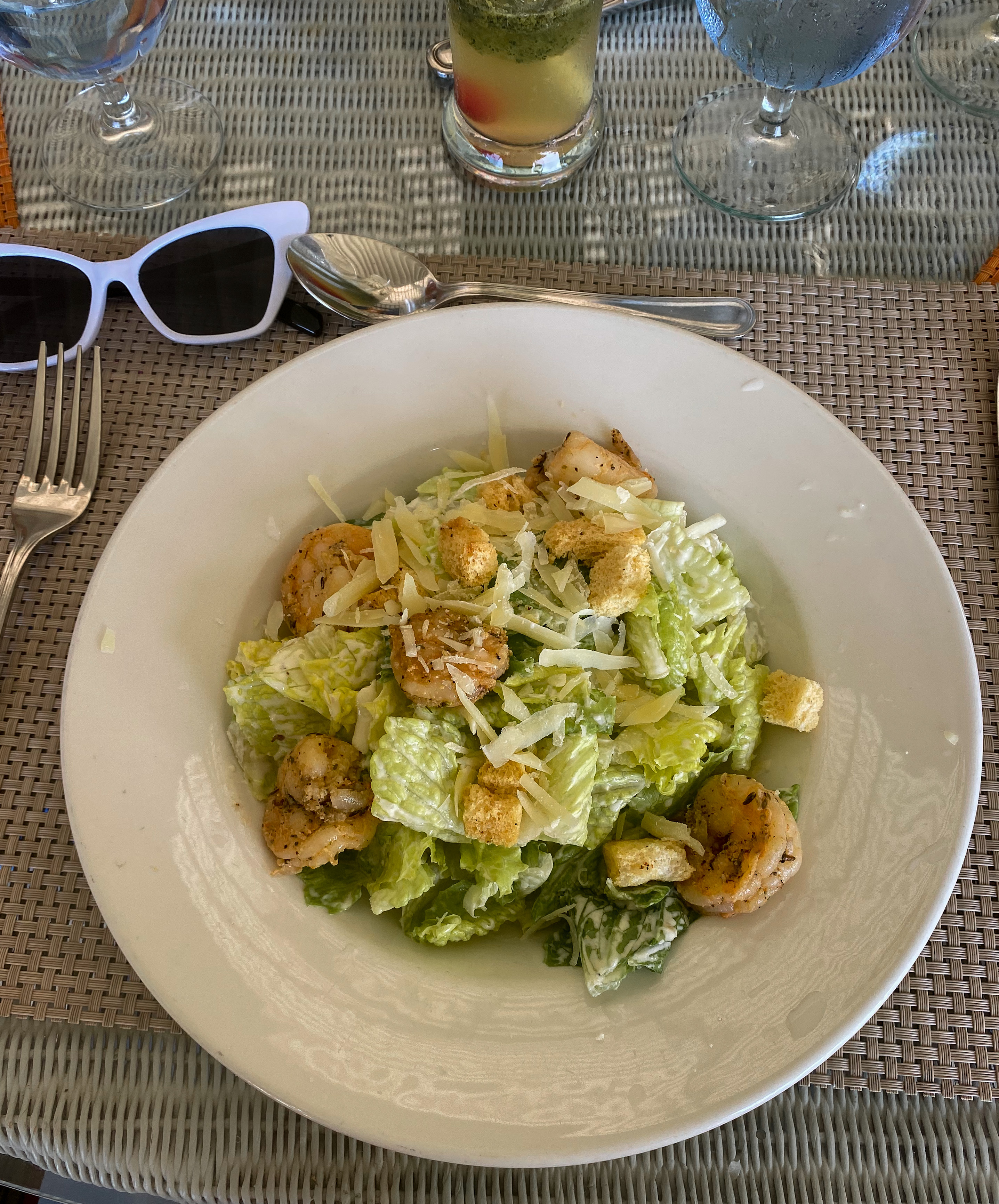 Lunch: Similar to breakfast lunch was served A la Carte. It was difficult for me to decide in the moment what I felt like I eating, therefore I wish it was buffet so that I could see the options and know what I’d like to try. I also found that the menu had more “snack” options than full lunch meals which was expected. In the end I settled for a Caesar salad with shrimp and a shrimp quesadilla.