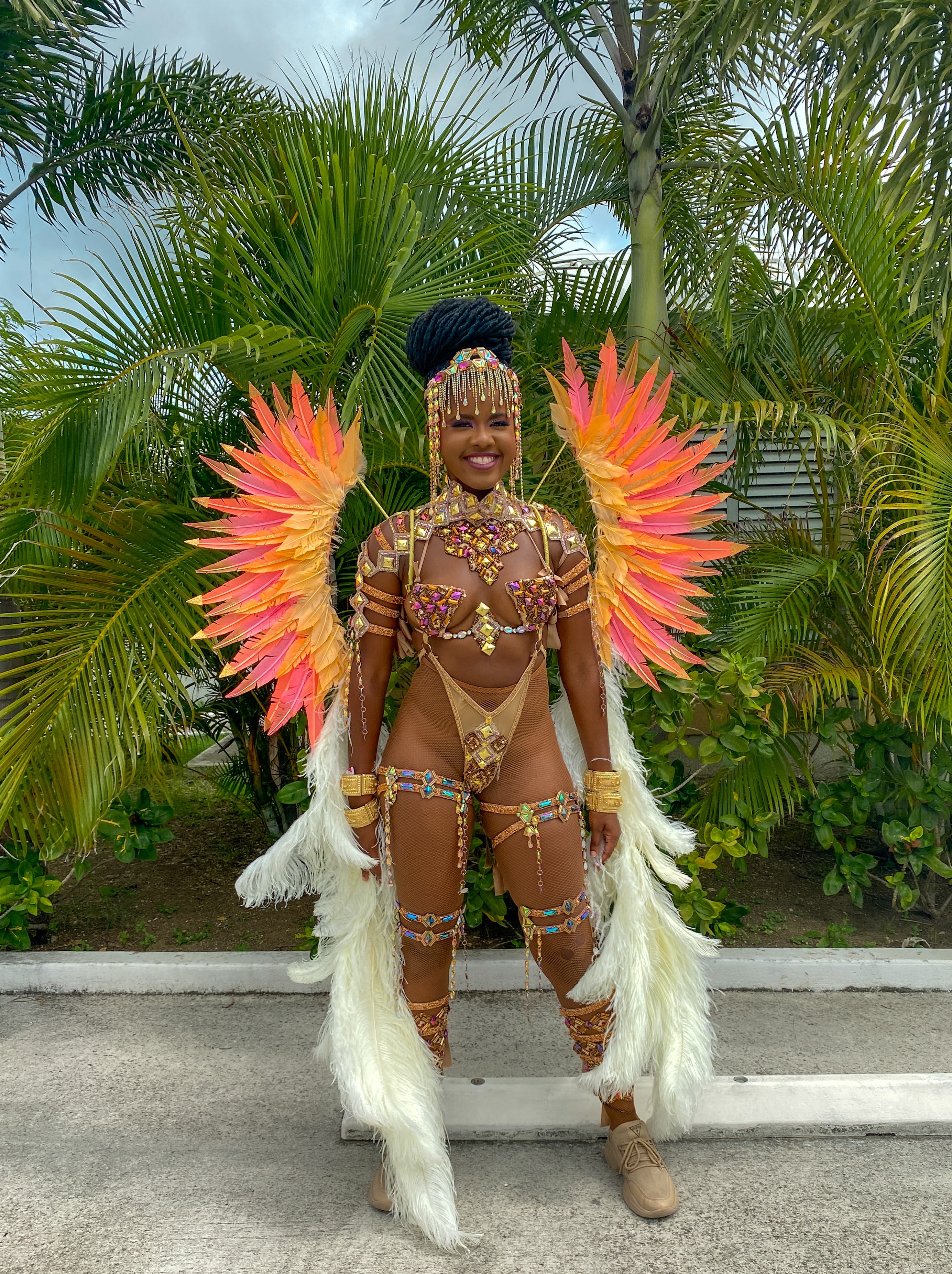 Tuesday’s route is normally longer than Monday’s and I wasn’t sure if I was prepared for it. One thing I made sure of though was to get my pictures taken by the many photographers in the band. The weather also switched up this day and we did get a bit soaked throughout the route, I tried not to let this upset me and enjoy my time on road. Unlike j’ouvert having it rain while on the road in a full face of makeup and pretty feathers wasn’t the best but it did cool us down.